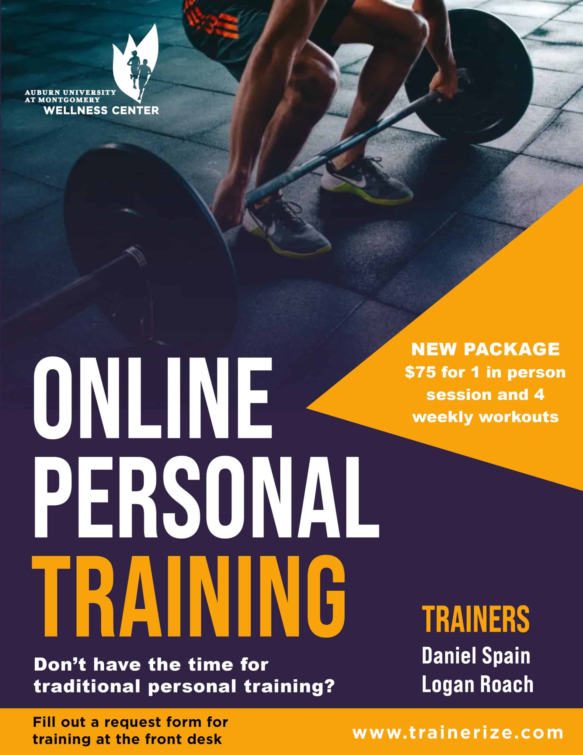 Explore the AUM Wellness Center’s online training program featuring trainers Daniel Spain and Logan Roach. To sign up, fill out a request form at the Wellness Center’s front desk.
